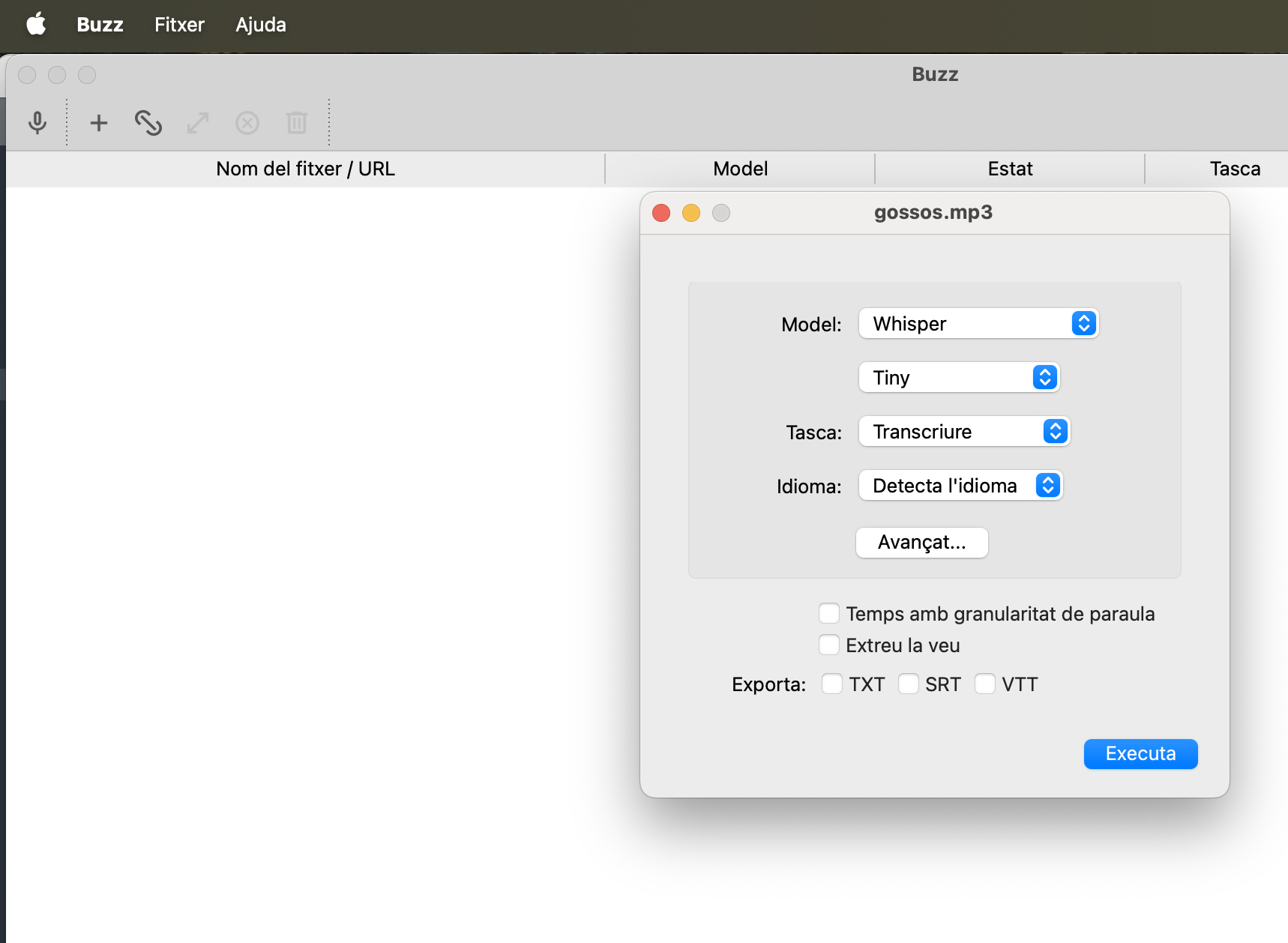 Buzz és una aplicació traduida al català per a mac OS, Winddows i Linux que transcriu i tradueix àudio i vídeo de manera local, sense connexió a internet. Utilitza la intel·ligència artificial Whisper d’OpenAI i també permet transcriure el micròfon en temps real.