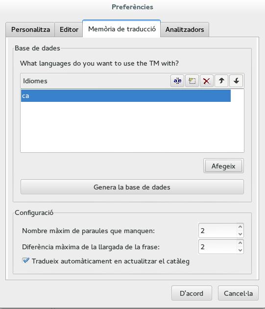 Primer cal configurar el Poedit perquè utilitzi la memòria de traducció.